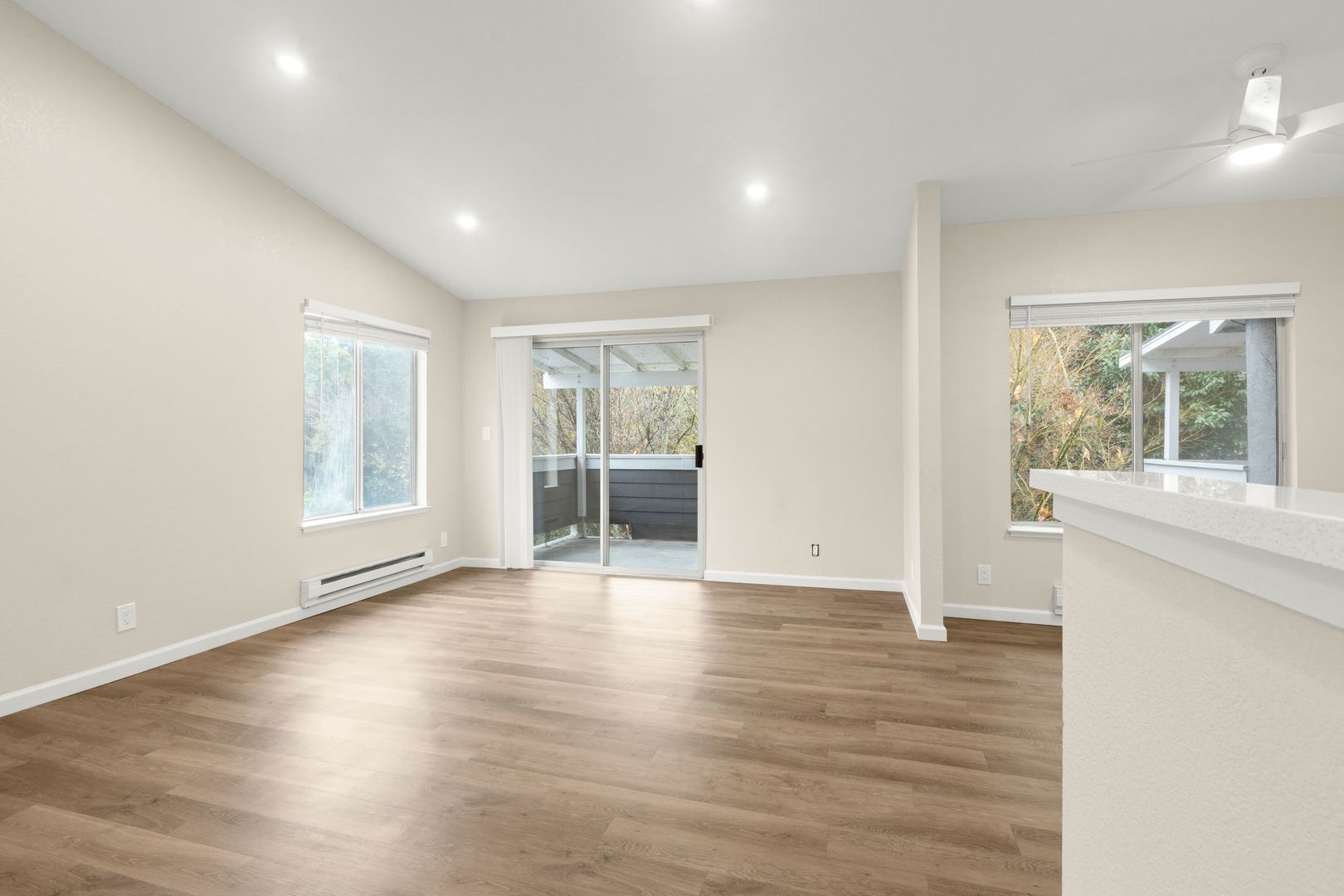Welcome to your dream home in the heart of El Sobrante, where modern living meets natural tranquility. This newly renovated two-bedroom, two-bathroom gem is perfectly situated on a quiet, tree-lined street, with a beautiful creek meandering through the property, offering a peaceful backdrop and a connection to nature that's hard to find. Step inside and be greeted by stylish, contemporary finishes new flooring, sleek canned lighting, and a modern kitchen boasting brand-new stainless steel appliances and stunning quartz countertops. Thoughtfully designed for comfort and convenience, this home features in-unit laundry, a private balcony where you can unwind and take in the soothing sights and sounds of the creek, and an enclosed garage for secure parking and extra storage.