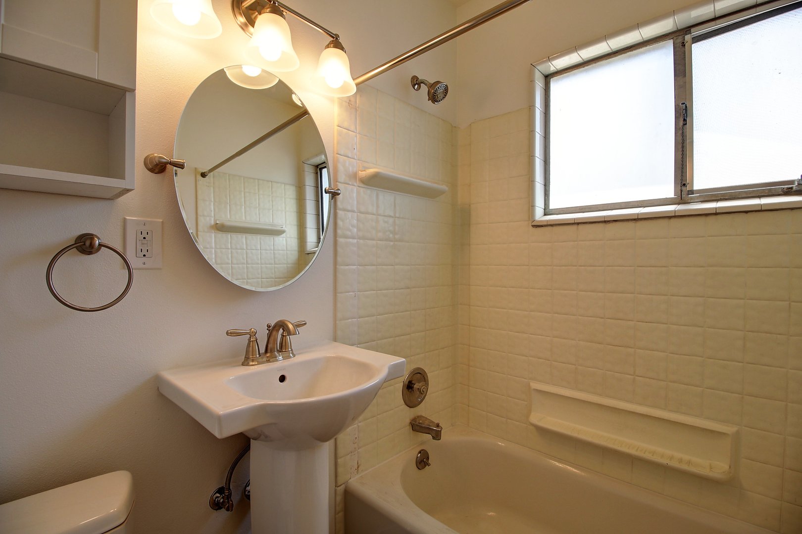 The bathroom has been thoughtfully upgraded with a new pedestal sink, toilet, and sleek new fixtures, creating a bright and refreshed look. The apartment is part of a smaller, quiet community that offers a relaxed atmosphere and a charming central courtyard—perfect for enjoying some fresh air or unwinding after a long day.